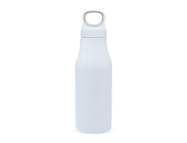 Garrafa 650ml em inox com tampa rosqueável com alça para transporte.