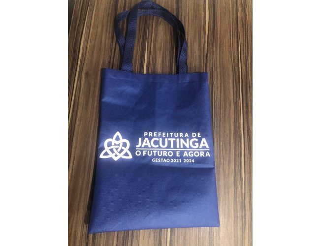 Mochila TNT 80g (40x33), rabo de rato 4/2 na parte superior para fechamento e presa na parte inferior com viés.