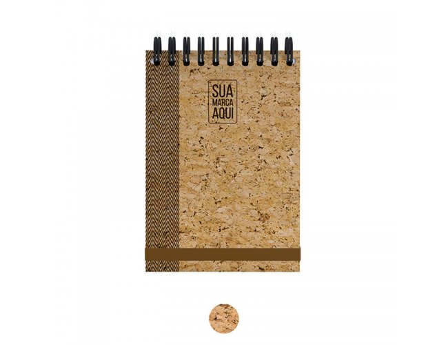 Descrição: Bloco de anotações com capa dura revestida em papel especial e fita elástica para fechamento. Possui cerca de
