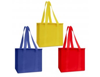 Bolsa térmica 10 litros em TNT com alça para mãos, revestimento interno de manta térmica.