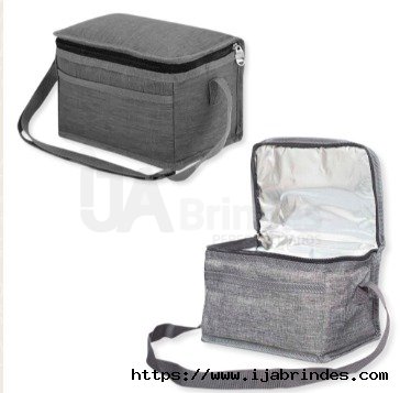 Possui uma alça tiracolo em fita ca 30mm larg Fechamento em zíper 06, 2 cursores, revestimento térmico com espuma pack, vivo desencapado no acabamento externo e acabamento interno. Medidas: 19x19x14.
